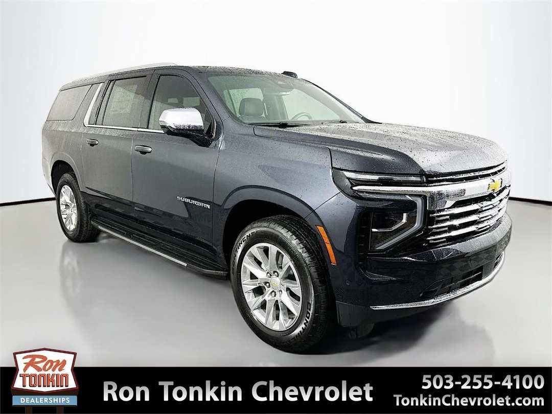 Factory MSRP: $83,88510 Speakers, 2-Speed Active Electronic AutoTrac Transfer Case, 20" x 9" Polished Aluminum Wheels, 3.23 Rear Axle Ratio, 3rd Row 60/40 Power-Folding Split-Bench, 3rd row seats: split-bench, 4-Way Power Driver Lumbar Seat Adjuster, 4-Way Power Front Passenger Lumbar Seat Adjuster, 4-Wheel Disc Brakes, 8-Way Power Driver Seat Adjuster, 8-Way Power Front Passenger Seat Adjuster, ABS brakes, Adaptive suspension, Advanced Trailering Package, Air Conditioning, Alloy wheels, AM/FM radio: SiriusXM with 360L, Apple CarPlay/Android Auto, Auto High-beam Headlights, Auto-dimming door mirrors, Auto-Dimming Inside Rear-View Mirror, Auto-dimming Rear-View mirror, Auto-leveling suspension, Automatic temperature control, Blind Zone Steering Assist with Trailering, Bose 10-Speaker Surround with CenterPoint, Brake assist, Bright Front and Rear Door Sill Plates, Bumpers: body-color, Chrome Door Handles with Body-Color Strip, Compass, Delay-off headlights, Driver door bin, Driver vanity mirror, Dual Exhaust System, Dual front impact airbags, Dual front side impact airbags, Dual-Pane Power Panoramic Sunroof, Electronic Stability Control, Emergency communication system: OnStar Services capable, Exterior Parking Camera Rear, Extra Capacity Cooling System, Four wheel independent suspension, Front anti-roll bar, Front Bucket Seats, Front Center Armrest, Front dual zone A/C, Front fog lights, Front LED Fog Lamps, Front reading lights, Fully automatic headlights, Garage door transmitter, Heated 2nd Row Outboard Seats, Heated door mirrors, Heated Driver and Front Passenger Seats, Heated front seats, Heated Power-Adjustable Outside Mirrors, Heated rear seats, Heated Steering Wheel, Heated steering wheel, Hill Descent Control, Hitch View with Pan/Zoom Image Adjustment, Illuminated entry, Integrated Trailer Brake Controller, LED Headlamps with LED Daytime Running Lamps, LED Tail Lamps, License Plate Front Mounting Package, Low tire pressure warning, Magnetic Ride Control Suspension, Max Trailering Package, Memory seat, Memory Settings, Navigation system: Google built-in compatibility (select service plan required, terms and limitations apply), Occupant sensing airbag, Outside temperature display, Overhead airbag, Overhead console, Panic alarm, Passenger door bin, Passenger vanity mirror, Perforated Heated and Ventilated Seats, Perforated Leather Seating Surfaces, Power door mirrors, Power driver seat, Power Liftgate, Power passenger seat, Power Release 2nd Row Bucket Seats, Power steering, Power Tilt and Telescopic Steering Column, Power windows, Power-Sliding Center Floor Console, Preferred Equipment Group 1LZ, Radio data system, Radio: 17.7" Diagonal Advanced Color LCD Display, Rain sensing wipers, Rear air conditioning, Rear anti-roll bar, Rear Power Liftgate, Rear reading lights, Rear window defroster, Rear window wiper, Remote keyless entry, Security system, SiriusXM with 360L Trial Subscription, Smart Trailer Integration Indicator, Speed control, Speed-sensing steering, Split folding rear seat, Spoiler, Steering wheel memory, Steering wheel mounted audio controls, Sun and Tow Package, Tachometer, Telescoping steering wheel, Tilt steering wheel, Traction control, Trip computer, Turn signal indicator mirrors, Universal Home Remote, Variably intermittent wipers, Ventilated front seats, Voltmeter, Wireless Apple CarPlay/Wireless Android Auto, Wireless Phone Charging.2025 Chevrolet Premier Suburban Dark Ash Metallic4D Sport Utility 10-Speed Automatic with Overdrive EcoTec3 5.3L V8 4WD