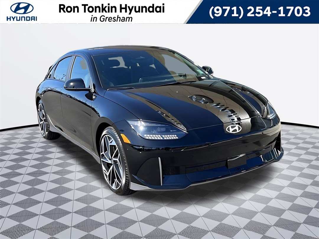 2025 Hyundai IONIQ 6 SEL Electric Motor 1-Speed Automatic AWD 4D Sedan Onyx Black 4-Wheel Disc Brakes, 6 Speakers, ABS brakes, Air Conditioning, Alloy wheels, AM/FM radio: SiriusXM, Apple CarPlay & Android Auto, Auto High-beam Headlights, Auto-dimming Rear-View mirror, Automatic temperature control, Brake assist, Bumpers: body-color, Cargo Blocks, Carpeted Floor Mats, Delay-off headlights, Driver door bin, Driver vanity mirror, Dual front impact airbags, Dual front side impact airbags, Electronic Stability Control, Emergency communication system: Bluelink Connected Car Services (Bluelink+), Envelope Cargo Net, First Aid Kit, Four wheel independent suspension, Front anti-roll bar, Front Bucket Seats, Front Center Armrest, Front dual zone A/C, Front reading lights, Fully automatic headlights, Garage door transmitter: HomeLink, H-Tex Leatherette Seating Surfaces, harman/kardon® Speakers, Heated door mirrors, Heated Front Bucket Seats, Heated front seats, Illuminated entry, Leather steering wheel, Low tire pressure warning, Navigation System, Occupant sensing airbag, Option Group 01, Outside temperature display, Overhead airbag, Overhead console, Panic alarm, Passenger door bin, Passenger vanity mirror, Power door mirrors, Power driver seat, Power steering, Power windows, Radio: AM/FM/SiriusXM/HD Radio Audio System, Rear anti-roll bar, Rear reading lights, Rear Reversible Cargo Tray, Rear seat center armrest, Rear window defroster, Remote keyless entry, Security system, Severe Weather Kit, Speed control, Speed-sensing steering, Split folding rear seat, Spoiler, Steering wheel mounted audio controls, Telescoping steering wheel, Tilt steering wheel, Traction control, Trip computer, Turn signal indicator mirrors, Variably intermittent wipers, Vehicle to Load Adapter, Wheels: 20 x 8.5J Alloy. Call for availability. Come in to Ron Tonkin Gresham Hyundai to test drive today! DA2028 View our entire inventory at https://www.rontonkinhyundai.com/ Pricing includes all applicable factory rebates, and discounts, buyer must finance through HMFA on approved credit. Price excludes tax, title, license, doc fee and dealer added accessories. Price includes: $7500 - Retail Bonus Cash. Exp. 03/02/2026