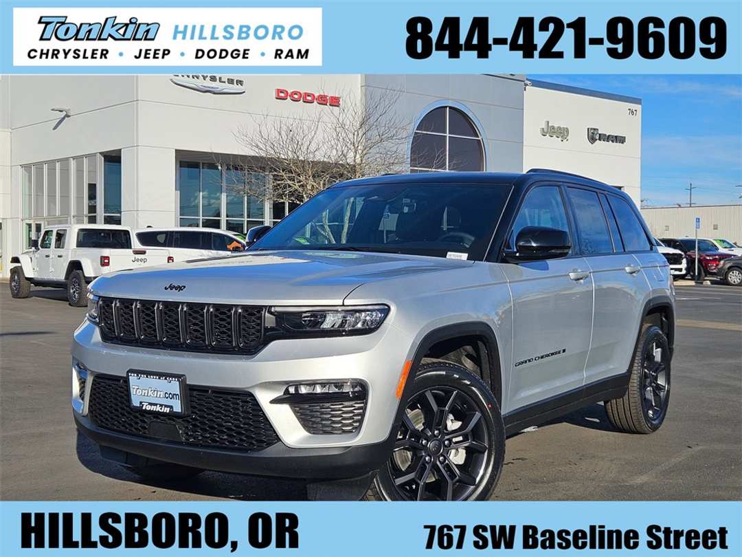 2025 Jeep Grand Cherokee Limited Silver Zynith 3.6L V6 24V VVT 4WD 8-Speed Automatic4WD, 220 Amp Alternator, 4-Wheel Disc Brakes, 6 Speakers, 7 and 4-Pin Wiring Harness, ABS brakes, Active Noise Control System, Air Conditioning, Alloy wheels, AM/FM radio: SiriusXM with 360L, Anti-whiplash front head restraints, Audio memory, Auto High-beam Headlights, Automatic Headlamp Levelling System, Automatic temperature control, Black Painted Roof, Blackout Model, Brake assist, Bumpers: body-color, Capri Leatherette Seats, Class IV Receiver Hitch, Compass, Delay-off headlights, Delete Limited Badge, Driver door bin, Driver vanity mirror, Dual front impact airbags, Dual front side impact airbags, Dual-Pane Panoramic Sunroof, Electronic Stability Control, Emergency communication system, Four wheel independent suspension, Front anti-roll bar, Front Bucket Seats, Front Center Armrest w/Storage, Front dual zone A/C, Front fog lights, Front License Plate Bracket, Front reading lights, Fully automatic headlights, Garage door transmitter, Gloss Black Exterior Accents, Heated door mirrors, Heated front seats, Heated rear seats, Heated steering wheel, Heavy-Duty Engine Cooling, Illuminated entry, Knee airbag, Low tire pressure warning, Memory seat, Model Year Tracking, Navigation System, Normal Duty Suspension, Occupant sensing airbag, Outside temperature display, Overhead airbag, Overhead console, Panic alarm, ParkView Rear Back-Up Camera, Passenger door bin, Passenger vanity mirror, Power door mirrors, Power driver seat, Power Liftgate, Power passenger seat, Power steering, Power windows, Quick Order Package 23E, Radio data system, Radio: Uconnect 5 Nav with 10.1" Display, Rear anti-roll bar, Rear Load Levelling Suspension, Rear reading lights, Rear window defroster, Rear window wiper, Remote keyless entry, Security system, Speed control, Speed-Sensitive Wipers, Split folding rear seat, Spoiler, Steering wheel mounted audio controls, Tachometer, Telescoping steering wheel, Tilt steering wheel, Traction control, Trailer Hitch Zoom, Trailer Tow Package, Trip computer, Turn signal indicator mirrors, Variably intermittent wipers, Voltmeter, Wheels: 18" x 8" Polished/Painted Aluminum, Wheels: 20" x 8.5" Black Painted Aluminum, 4WD. Price includes: $2250 - 2025 National Retail Bonus Cash . Exp. 03/02/2026
