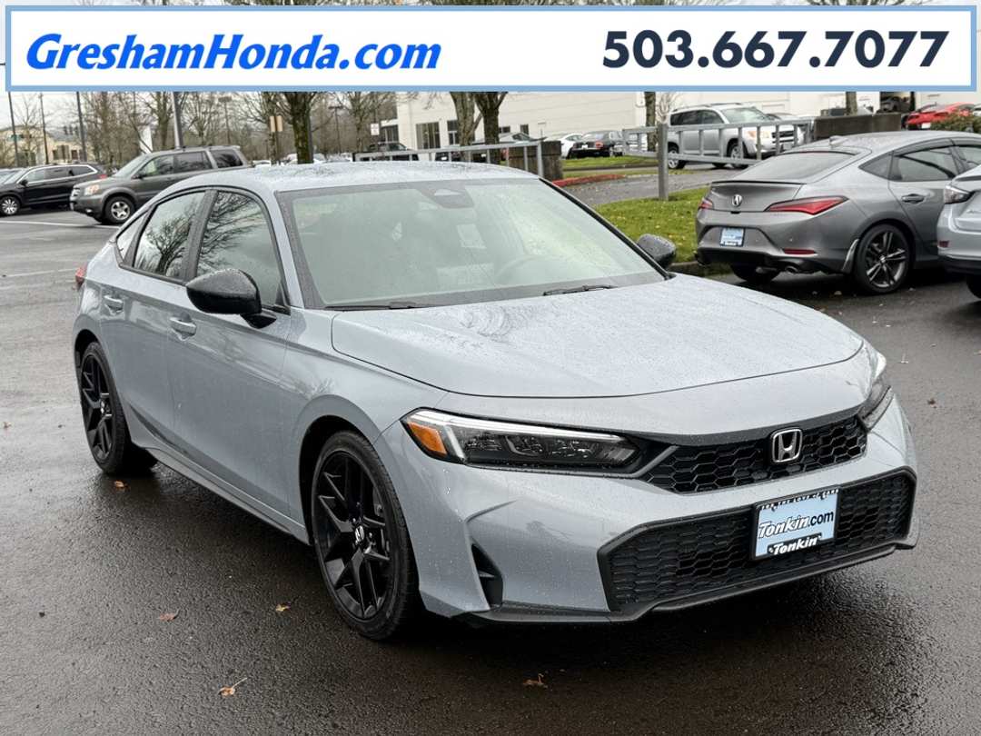 Please Note this price does not include any dealer added accessories. This vehicle is located at Tonkin Gresham Honda Please call to learn more! . 2026 Honda Civic Sport Hatchback 4D Hatchback 2.0L I4 DOHC 16V CVT FWD Urban Gray Pearl 4-Wheel Disc Brakes, 8 Speakers, ABS brakes, Adaptive Cruise Control: Adaptive Cruise Control (ACC) with Low-Speed Follow, Air Conditioning, Alloy wheels, AM/FM radio, Apple CarPlay/Android Auto, Auto High-beam Headlights, Automatic temperature control, Blind Spot Information (BSI) System warning, Brake assist, Bumpers: body-color, Cloth/Leatherette Seating Surfaces, Delay-off headlights, Driver door bin, Driver vanity mirror, Dual front impact airbags, Dual front side impact airbags, Electronic Stability Control, Emergency communication system: HondaLink, Exterior Parking Camera Rear, Four wheel independent suspension, Front anti-roll bar, Front Bucket Seats, Front Center Armrest, Front reading lights, Fully automatic headlights, Heated door mirrors, HondaLink, Illuminated entry, Knee airbag, Lane departure: Lane Keeping Assist System (LKAS) active, Leather Shift Knob, Low tire pressure warning, Occupant sensing airbag, Outside temperature display, Overhead airbag, Panic alarm, Passenger door bin, Passenger vanity mirror, Power door mirrors, Power steering, Power windows, Radio data system, Radio: 180-Watt Audio System, Rear anti-roll bar, Rear side impact airbag, Rear window defroster, Rear window wiper, Remote keyless entry, Security system, Speed control, Speed-sensing steering, Split folding rear seat, Steering wheel mounted audio controls, Tachometer, Telescoping steering wheel, Tilt steering wheel, Traction control, Trip computer, Wheels: 18" Gloss Black Alloy.