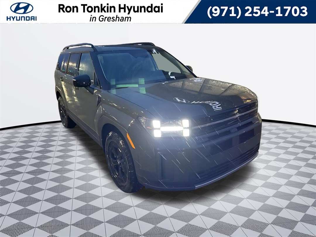 2026 Hyundai Santa Fe XRT 2.5L I4 8-Speed Automatic with SHIFTRONIC AWD 4D Sport Utility Rockwood Green AWD, Black Premium Synthetic, 3rd row seats: bench, 4-Wheel Disc Brakes, 6 Speakers, ABS brakes, Air Conditioning, Alloy wheels, AM/FM radio: SiriusXM, Apple CarPlay & Android Auto, Auto High-beam Headlights, Automatic temperature control, Brake assist, Bumpers: body-color, Cargo Cover/Screen, Cargo Net, Cargo Organizer, Carpeted Floor Mats, Delay-off headlights, Driver door bin, Driver vanity mirror, Dual front impact airbags, Dual front side impact airbags, Electronic Stability Control, Emergency communication system, Exterior Parking Camera Rear, First Aid Kit, Four wheel independent suspension, Front anti-roll bar, Front Bucket Seats, Front Center Armrest, Front dual zone A/C, Front reading lights, Fully automatic headlights, H-Tex Leatherette Seat Trim, Heated door mirrors, Heated Front Bucket Seats, Heated front seats, Illuminated entry, Knee airbag, Leather steering wheel, Low tire pressure warning, Mudguards, Navigation System, Occupant sensing airbag, Option Group 01, Outside temperature display, Overhead airbag, Overhead console, Panic alarm, Passenger door bin, Passenger vanity mirror, Power door mirrors, Power driver seat, Power Liftgate, Power moonroof, Power steering, Power windows, Radio: AM/FM/HD Display Audio, Rear anti-roll bar, Rear seat center armrest, Rear side impact airbag, Rear window defroster, Rear window wiper, Remote keyless entry, Security system, Severe Weather Kit, Speed control, Speed-sensing steering, Split folding rear seat, Spoiler, Steering wheel mounted audio controls, Tachometer, Telescoping steering wheel, Tilt steering wheel, Traction control, Trip computer, Turn signal indicator mirrors, Variably intermittent wipers, Wheels: 18" x 7.5J Dark Alloy, AWD, Black Premium Synthetic. Call for availability. Come in to Ron Tonkin Gresham Hyundai to test drive today! DA2028 View our entire inventory at https://www.rontonkinhyundai.com/ Pricing includes all applicable factory rebates, and discounts, buyer must finance through HMFA on approved credit. Price excludes tax, title, license, doc fee and dealer added accessories. Price includes: $3500 - Hyundai HMF Dealer Choice : $3500 discount and 5.39% APR for 24 months. $44.05 per $1000 financed. Available to well qualified buyers who finance through Hyundai Motor Finance. H704. Exp. 03/02/2026