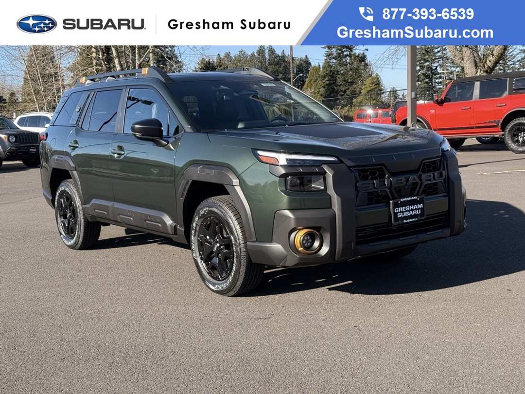 12 Speakers, 4-Wheel Disc Brakes, ABS brakes, Air Conditioning, Alloy wheels, AM/FM radio: SiriusXM with 360L, Anti-whiplash front head restraints, Auto High-beam Headlights, Automatic temperature control, Blind Spot Warning, Brake assist, Bumpers: body-color, Driver door bin, Driver vanity mirror, Dual front impact airbags, Dual front side impact airbags, Electronic Stability Control, Emergency communication system: MySubaru Companion (5-years free), Exterior Parking Camera Rear, Four wheel independent suspension, Front anti-roll bar, Front Bucket Seats, Front Center Armrest w/Storage, Front dual zone A/C, Front fog lights, Front reading lights, Fully automatic headlights, harman/kardon® Speakers, Heated and Ventilated Front Bucket Seats, Heated door mirrors, Heated Front Bucket Seats, Heated front seats, Heated rear seats, Heated steering wheel, HVAC memory, Illuminated entry, Knee airbag, Leather Shift Knob, Leather steering wheel, Low tire pressure warning, Moonroof and Navigation and Surround View Monitor and Ventilated Seats, Nappa Leather Upholstery, Occupant sensing airbag, Outside temperature display, Overhead airbag, Overhead console, Panic alarm, Passenger door bin, Passenger vanity mirror, Power door mirrors, Power driver seat, Power Liftgate, Power Moonroof, Power steering, Power windows, Power-Folding Heated Exterior Mirrors, Radio: Subaru 12.1" Multimedia System, Radio: Subaru 12.1" Multimedia System with Navigation, Rain sensing wipers, Rear anti-roll bar, Rear seat center armrest, Rear window defroster, Rear window wiper, Remote keyless entry, Security system, Speed control, Speed-sensing steering, Split folding rear seat, Spoiler, StarTex-Trimmed Upholstery, Steering wheel mounted audio controls, Surround View Monitor, Tachometer, Telescoping steering wheel, Tilt steering wheel, Traction control, Trip computer, Turn signal indicator mirrors, Variably intermittent wipers, Wheels: 17" x 7J Matte Black Finish Aluminum-Alloy. 2026 Subaru Outback Wilderness 4D Sport Utility CVT Lineartronic 2.4L 4-Cylinder DOHC 16V AWD Deep Emerald Green PearlVisit Gresham Subaru online at www.GreshamSubaru.com and see why we service Portland and Vancouver as The BIG Subaru Store with the SMALL Prices!!!