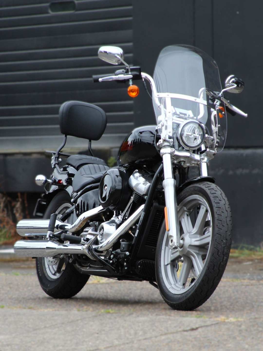 2023 Harley-Davidson FXST Softail Standard Vivid Black with quick-detach windshield and passenger backrest with rack, literally like new with just 25 miles on it!