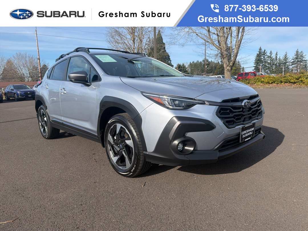 Odometer is 7654 miles below market average! CARFAX One-Owner. Certified. Subaru Certified Pre-Owned Certified, 3.70 Axle Ratio, 4-Wheel Disc Brakes, 6 Speakers, ABS brakes, Air Conditioning, Alloy wheels, AM/FM radio: SiriusXM, Anti-whiplash front head restraints, Auto High-beam Headlights, Automatic temperature control, Brake assist, Bumpers: body-color, Driver door bin, Driver vanity mirror, Dual front impact airbags, Dual front side impact airbags, Electronic Stability Control, Emergency communication system: STARLINK Safety and Security (Subscription Required), Exterior Parking Camera Rear, Four wheel independent suspension, Front anti-roll bar, Front Bucket Seats, Front Center Armrest, Front dual zone A/C, Front fog lights, Front reading lights, Fully automatic headlights, Heated door mirrors, Heated Front Bucket Seats, Heated front seats, Illuminated entry, Knee airbag, Leather Shift Knob, Leather-Trimmed Upholstery, Low tire pressure warning, Occupant sensing airbag, Outside temperature display, Overhead airbag, Overhead console, Panic alarm, Passenger door bin, Passenger vanity mirror, Power door mirrors, Power driver seat, Power steering, Power windows, Radio data system, Radio: Subaru STARLINK 11.6" Multimedia Plus Sys, Rear anti-roll bar, Rear seat center armrest, Rear window defroster, Rear window wiper, Remote keyless entry, Security system, Speed control, Speed-sensing steering, Split folding rear seat, Spoiler, STARLINK/Apple CarPlay/Android Auto, Steering wheel mounted audio controls, Tachometer, Telescoping steering wheel, Tilt steering wheel, Traction control, Trip computer, Turn signal indicator mirrors, Variably intermittent wipers, Wheels: 18" x 7.0J Dark Gray Aluminum Alloy. 2024 Subaru Crosstrek Limited 4D Sport Utility 2.5L 4-Cylinder DOHC 16V Lineartronic CVT AWD Ice Silver Metallic Subaru Certified Pre-Owned Details: * Transferable Warranty * Powertrain Limited Warranty: 84 Month/100,000 Mile (whichever comes first) from original in-service date * Warranty Deductible: $0 * Vehicle History * Roadside Assistance * SiriusXM 3-Month trial subscription, $500 Owner Loyalty coupon & 1 year trial subscription to STARLINK * 152 Point InspectionClean CARFAX.